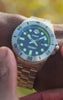 This watch is suitable for swimming, snorkelling, surfing and recreational scuba-diving. To maintain water resistance, do not press any buttons while underwater.