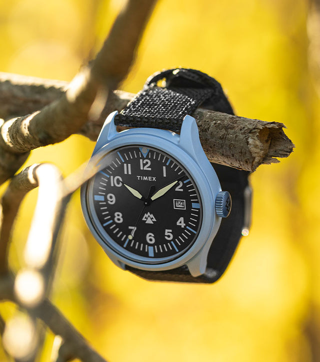 Easy to wear and planet-friendly, our Expedition Traprock is for those who love venturing outdoors but want to minimize their carbon footprint. It’s built with durable yet eco-friendly materials like a tapered fabric strap made from 100% post-consumer recycled plastic and lined with vegan apple leather, and a sturdy eco-ceramic case made from a special blend of ceramic and bio-based resin derived from castor plants. The clean-cut dial appears in earthy colorways that complement any ‘fit, and luminescent hands provide night visibility if you find yourself still exploring after dark. So, open your map (or your app), pick a trail, and get out there.Specifications