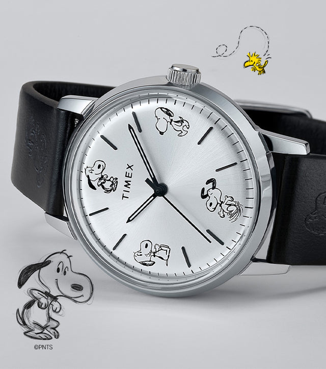 Experience the enchantment of the Peanuts gang like never before with the latest update to our Timex Marlin®. This watch features a silver-tone dial and case, setting the stage for Peanuts graphics rendered in an artistic sketched-out style. Nostalgic and fun, this timepiece is a heartfelt tribute to the creative brilliance of cartoonist Charles M. Schulz, whose imaginative world continues to inspire generations worldwide.Specifications