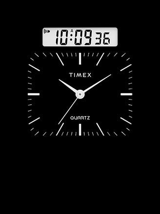 This modern-day reissue of an ‘80s classic delivers quartz accuracy with a dual analog and digital display on a clean black dial. Upgraded with a modestly sized 33mm brushed and polished stainless-steel case, it’s packed with the features you need to keep you on schedule and get you through the work week: dual time zone tracking, a chronograph, alarm, and date function. Finished with a thin handset, a polished crown and pushers, a brushed silver-tone stainless-steel bracelet, and the distinct Q Timex® logo authentic to the original, this ana-digi dress watch is a true throwback.Specifications