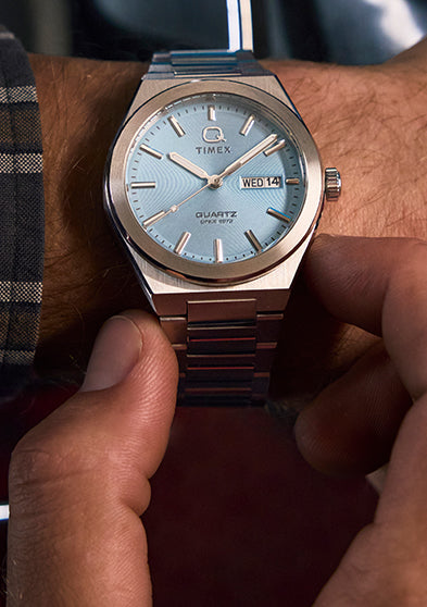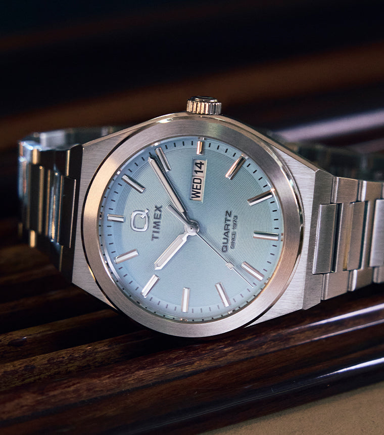 Launched during the quartz crisis of the '70s, the Q Timex collection was born of a great pivot and marks Timex’s most prolific era in design. It reflects the innovative styling that defined the decade, blending vintage elements with modern updates.