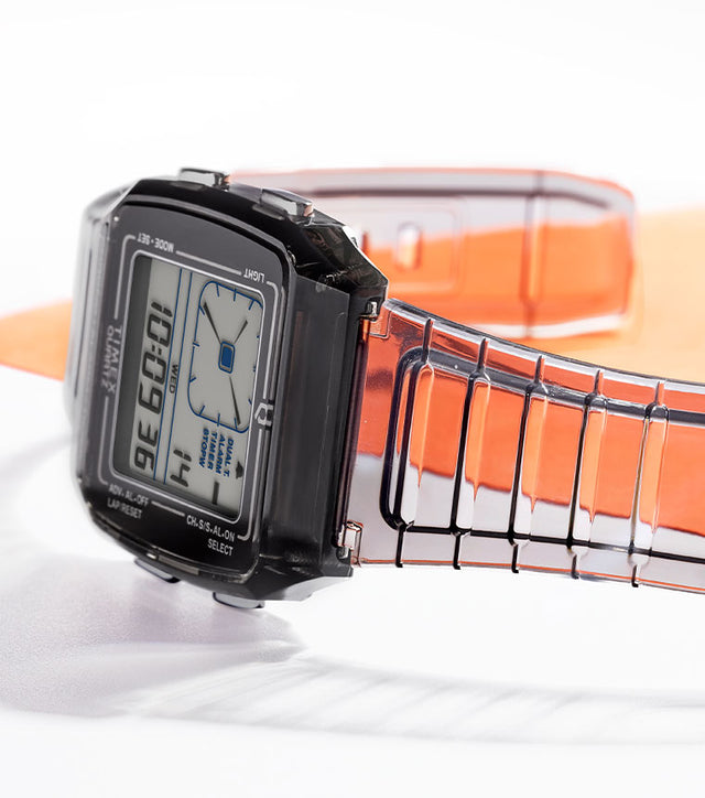 Call us nostalgic, but we love digging into our archives. This time we found a digital watch from the late ‘80s we just had to bring back. Our Q Timex® Digital LCA—liquid crystal analog—recreates the original right down to the unique digital/analog display. We’ve modernized it with a translucent resin case and coordinating resin strap available in grey, but kept the pre-INDIGLO® single-bulb backlight for a truly retro vibe. The result is a watch that’s just as useful, wearable, and appealing as it was more than four decades ago.Specifications