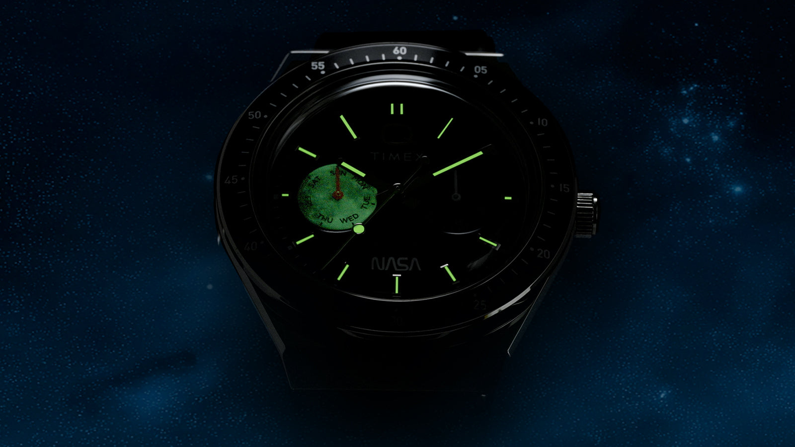 We're paying homage to the 1972 Apollo 17 mission to the moon with a cosmic reimagining of our '70s Q Timex. Full of stellar details, this watch includes a multifunction movement with sub-dials dedicated to tracking the day of the week, the date, and a day/night indicator depicting sun and moon illustrations. The most captivating detail: a luminous moon graphic in the day of the week sub-dial, glowing with the same in-fill as the hands and markers so that it shines like the moon itself. Turning the watch over reveals another tribute to space history with the iconic “Blue Marble” photograph, captured by Apollo 17 astronauts on their journey home. Completing the look is a natural leather strap responsibly sourced from the Leather Working Group (LWG) and an ornamental tachymeter bezel.Specifications