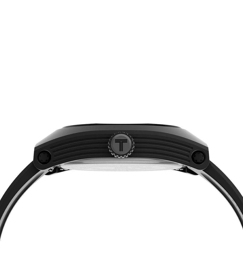 Our Urban Pop proves that sustainable fashion doesn’t have to skimp on quality or style. This watch keeps things sleek and clean with a sturdy 40mm eco-ceramic case made from a special blend of ceramic and bio-based resin derived from castor plants, paired with a subtly textured bio-based resin strap that’s comfortable and effortlessly cool. The minimalist dial with high-contrast markers proudly rocks the slogan “Takes a licking and keeps on ticking” as a shout-out to Timex’s legendary durability and an ode to our planet’s unwavering resilience.