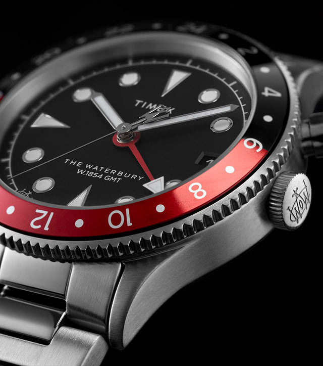 With our Waterbury Traditional GMT, we’ve blended our traditional craftsmanship with the practicality of a GMT movement. The watch can track an additional time zone thanks to a fourth hand on the black dial, an immensely practical feature for world travelers and global connections. With a 39mm stainless-steel case profile, rotating top ring, handy date feature, and stainless steel bracelet, the Waterbury Traditional GMT is the wristwatch to keep you on time, no matter where you’re touching down tomorrow.Specifications